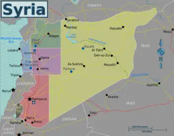 Syria (الجمهوريّة العربيّة السّوريّة Al-Jumhuriya al-`Arabiya as-Suriya, the Syrian Arab Republic) is a country in the Middle East. Rich in history, the capital, Damascus, is the world's oldest continuously inhabited city, and the country has been the site of numerous empires.