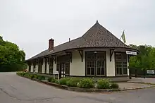 From Bala, the trains continue along the CN line for approximately 40 km to π Washago (143 km/3 hr, 4,323 km/3 days, 18 hr, Eastern), its final stop before the Toronto terminus. Washago is a small village that marks the approximate boundary between the forested lands of Ontario's "Cottage Country" and the Golden Horseshoe (and the farmlands of Southwestern Ontario).