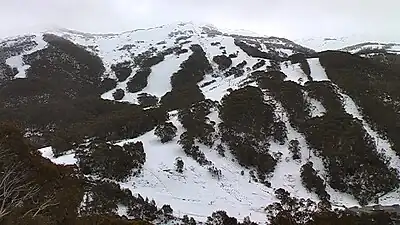- The Basin: a wide area above Crackenback and above the treeline. While rated for beginners and easier than the Crusier area beginners runs, it is only accessible by the Kosciuszko chairlift which does not allow downloading, and thus only used by advanced beginners and up, able to descend Crackenback via the Village Trail or other more difficult runs. It is served by a T-bar.