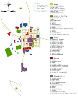 - 🌍 Public Library. Dates from the 3rd or possibly the 4th century. Consists of a large semi-circular room flanked by two secondary rectangular rooms, and preceded by a U-shaped colonnaded portico surrounding three sides on an open court.