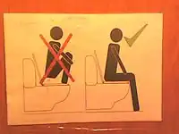 Although pictorial signs showing the correct way to sit on a toilet (such as the one above) may seem laughable, they stem from a genuine lack of knowledge. They're generally for older generations who grew up with only squat toilets, and may even consider it unclean to touch their bottom where everyone else's bottom has been! Unfortunately for them, Western toilets for sitting just aren't designed to be squatted on, and doing so is likely to break the seat or wind up with a foot slipping into the toilet. |