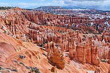 - π Bryce Canyon National Park β A geological amphitheater with hundreds of tall red rock hoodoos that make up a spectacular landscape in the midst of a pine forest.
