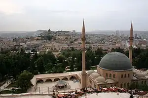 - 🌍 Şanlıurfa Castle. Tu-Su 08:30-17:00 (but indefinitely closed as of Jul 2023). The ancient ruined castle with newer walls dating from around 814 AD on the rocky promontory at the south side of town. A lone column is just about all that remains of the older structure but the views are spectacular. Almost mystical crimson and hazy sights from the terrace at the entrance of the castle over the old city during the evening call to prayer is hard to beat and well worth the effort the climb there, even if the grounds of the castle is closed already. 40 TL.