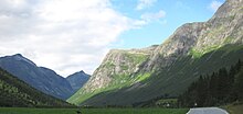 Valldal is the 30-kilometre-long valley going from the fjord in the south to the famous Trollstigen in the north. It is a fertile valley (known for strawberries and fruit) surrounded by alpine mountains. The valley is home to road 63 connecting Geiranger and Åndalsnes. The area sits on the northern shore of Norddalsfjorden-Tafjorden branch of Storfjorden and includes Tafjord village and valley as well as Fjørå village.
