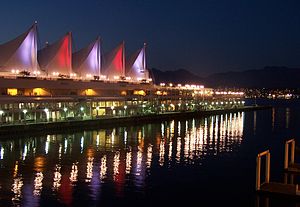 - π Canada Place, 999 Canada Pl (northwest of Waterfront station). Built for Expo 86 as Canada's exhibit, today the building serves as a cruise ship terminal and the eastern building of Vancouver Convention Centre. It is also the site of an IMAX theatre and the luxurious Pan Pacific Hotel. Walk around the unique sailed structure and take in views of the building itself, Coal Harbour, and the North Shore. It uses white colour with a roof of funky "sails" or "waves", which is a curved triangular shape, that has made it a modern gem.