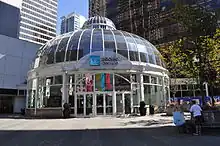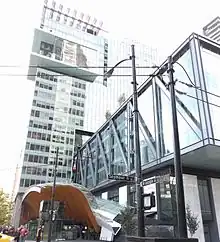 - π Telus Garden, 510 W Georgia St. Glass office building with a distinct outside that contains 4 storey gardens.
