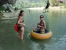 - 🌍 Tubing. 12:00-14:00 is a reasonable time to go because earlier everyone else would be still asleep. Look at the magnificent view of the mountains rising directly beside the river. Tubes have to be back by 18:00 or you lose 20,000 kip from your deposit. In winter it gets a bit cold from 16:00, so start early. The Organic Farm is a nice place for lunch before commencing tubing). Beware of tubes getting stolen while stopping at bars, you may lose your deposit and the ride down. Tubes get stacked up at each bar so keep an eye on how many are left, especially at the first few bars where lots of people arrive without their own tube. If you're not used to drinking liquor, stick with beer and for reasons of safety and common sense consider avoiding alcohol completely if entering the water. As of 2016, only 2 bars remain open, and both are fairly close to the beginning of the tubing. Consequently, many people stop at the last bar and drink until night-time, then take a tuk-tuk back into town. During rainy season there is more water in the river and eye infections are common. You can hire dry bags (hire for 15,000 kip or buy own nearby for 50,000 kip), but they may not be of the best quality. Cameras can get ruined by faulty bags, so if in doubt, don't bring your camera. 55,000 kip for the tube + 60,000 kip deposit.
