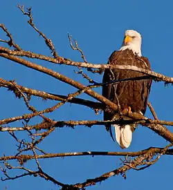 The San Juan Islands are in the Pacific coast flyaway which extends from Alaska to South America and almost 300 species of birds have been observed on the islands. The islands offer an extensive variety of environments from rocky sea shores to lush wetlands offering a large number of habitats for birds in a relatively compact area including the nature reserve on Waldron Island. The San Juan Audubon Society holds regular meetings, bird counts and postings of bird activity on their website . Bald Eagles, Great Blue Heron, Kingfishers and Cormorants are all common sites on the islands but rare birds are sometimes seen migrating through the area.