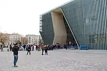 - 🌍 Warsaw University Library (Biblioteka Uniwersytecka w Warszawie), ul. Dobra 56/66. Built in 1999, the new home of the Warsaw University Library is a postmodernist building blending raw concrete with patinated copper. The building also features freely accessible extensive rooftop gardens providing interesting views over Warsaw. The building housing the Linguistics Faculty of the university opposite the library is also an interesting piece of modern architecture.
