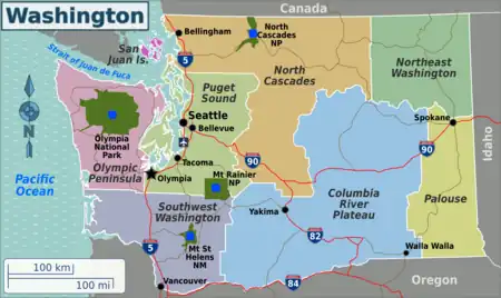 Washington is generally very safe and the chance of you running into any trouble is very, very low. Certain areas of Seattle, Tacoma, Spokane and Yakima can become seedy after dark and it is therefore advised that one avoid being out alone very late at night; this is especially true in unlit places where you are an easy target for any crime or other illegal activity. See the "Stay Safe" section of the Seattle, Spokane, Tacoma, and Yakima articles.
