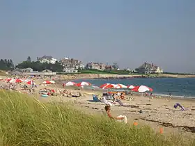 - Watch Hill Beach You have to pay to use this beach. Watch Hill Beach is exclusive. Payment gets you an umbrella, parking, restaurant, and cabana use. Also, placed in the water is a black "dock" where people can swim to and play on. It is a big hit for the children.