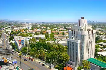- π Sunset Tower Hotel, 8358 W Sunset Blvd, β +1-323-654-7100. The Sunset Tower is perched high on the Sunset Strip and is the sight of regular celebrity sightings. Built in 1929, this hotel has been beautifully renovated. Staff is excellent and the rooms feature floor to ceiling windows. Swimming pool has sweeping views of Los Angeles. In the evening, the pool area is converted into an extension of the popular Tower Bar. $350.