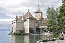 - The Château de Chillon is a mediaeval castle prominently built on a small island and connected to the shore via a bridge near Montreux. There is an exposition inside and most of the castle can be toured, but it also offers very scenic views just seen from the outside.