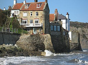 Buses (see "Get in") ply along the main road, which is a mile or so inland from the coast for the most part. So buses can get you to and from Sandsend and Robin Hoods Bay, but there's limited coast access otherwise.