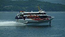 The ferry ports have separate landing wharves for the regular ferry, and the Toppy and Rocket companies.