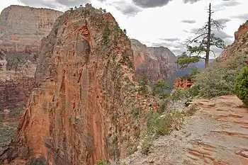 Be careful of steep cliffs; people have died falling when they venture too close to the edge. Some trails are more hazardous than others and should be attempted only by experienced hikers without a fear of heights. Loose sand and pebbles on stone are extremely slippery. Be extra careful near the edge when using cameras or binoculars. Never throw or roll rocks; there may be hikers below. Stay on the trail, stay away from the edge, observe posted warnings, and if you have children with you, watch them carefully!