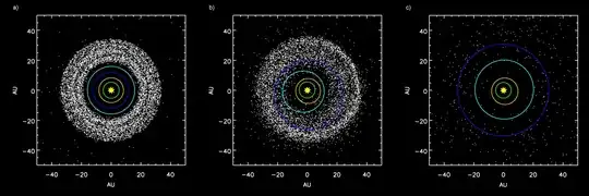 - The Kuiper Belt and the scattered disk formed, again by interactions between Uranus, Neptune and outer planetesimals and icy objects.