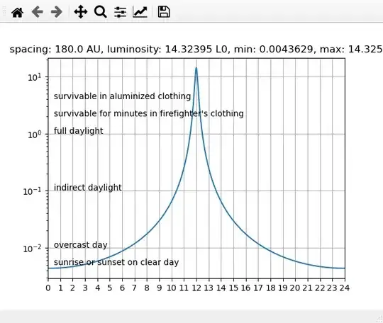 In these cases, I try to maintain the same average heat flux that is experienced on earth, to allow meaningful photosynthesis. You can see that if you want proper darkness at night, there will be short hard bursts of heat which will only be survivable in underground bunkers.