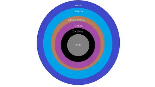 The planet first formed out of carbon based materials in the inner stellar system, consists of primarily diamonds encapsulating some carbides and iron. the diamondoid layer is impure, and the magnesium,aluminium,sodium and calcium raises to form a crust of calcium magnesium aluminates, calcium silicates and sodium calcium aluminates, forming a Plagioclastic crust over the carbonaceous interior.