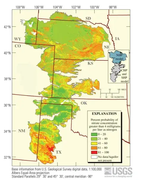 The water quality can vary by region. For example, this map of nitrate concentration in the High Plains (from (Gurdak et al. (2009)) varies widely, do to agricultural use and other sources. Location is everything when it comes to water quality.