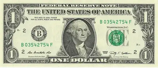 Now, the dates on 1\$ bills aren't easy to see at a glance. Try to find the date on this image of a 2009 bill: